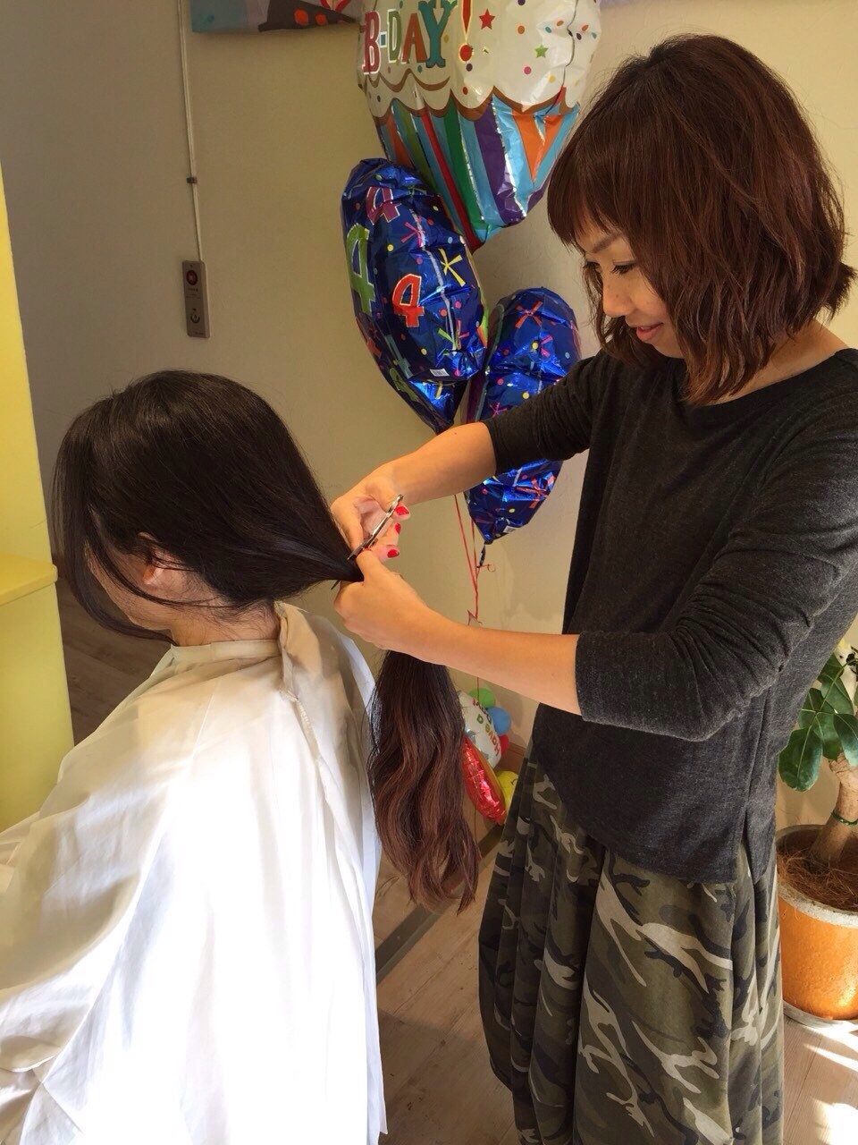 こんばんは、FRISÖRです! 先日ご来店いただいたお客様の断髪式の様子ですー♪ 30cm以上のヘアカット。 切った髪の毛は寄付するそうで、お持ち帰りになりました⭐️