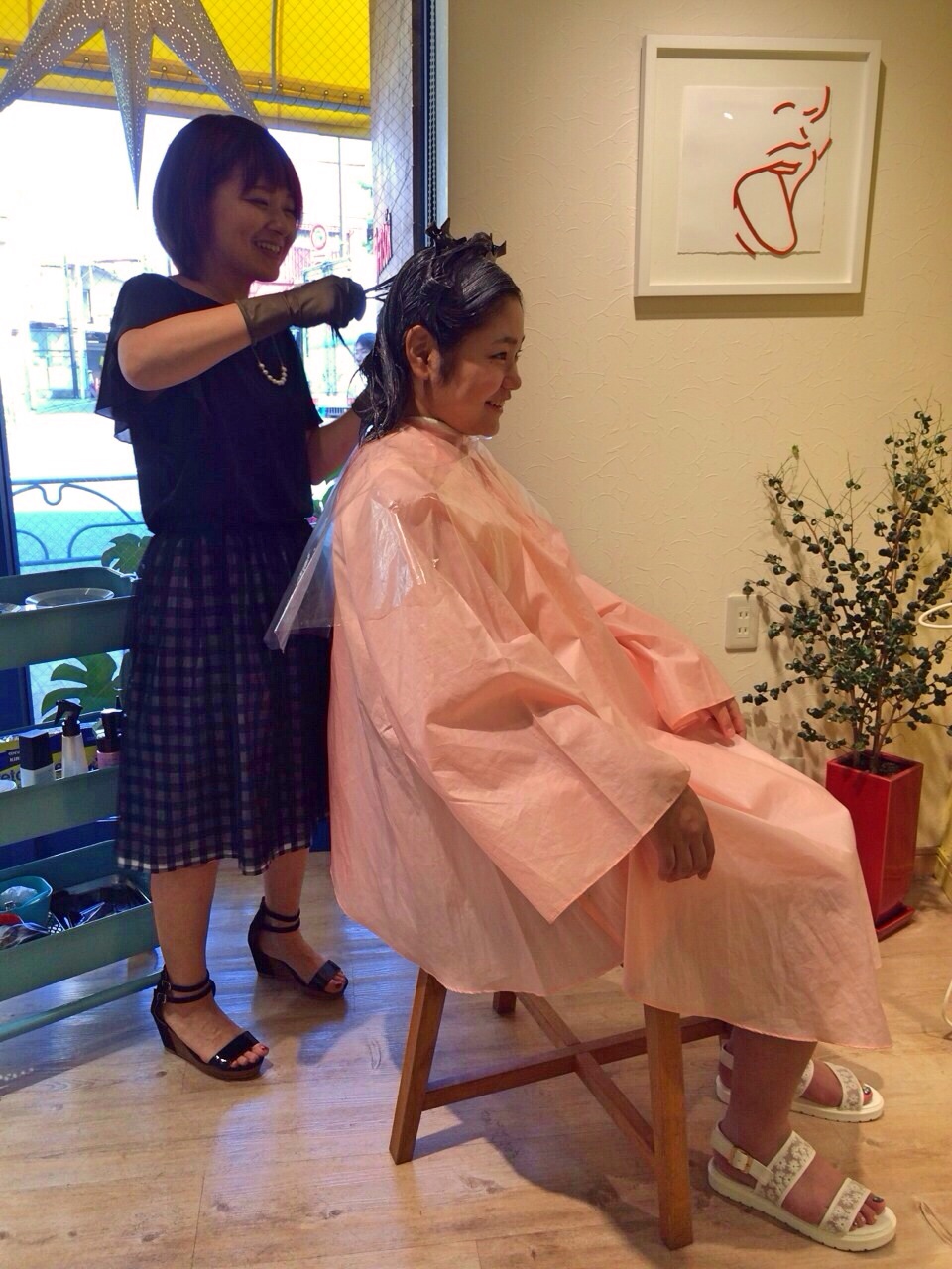 今日のお客様レポートは、、16歳のMちゃんです。 なんと人生初のカラーリング ママがカラーしているのをみては「わたしもしたい!」といい続けていたMちゃんがついにデビューです!カウンセリングもワクワク 塗布中もドキドキ シャンプーアップでカラーした自分に初対面!