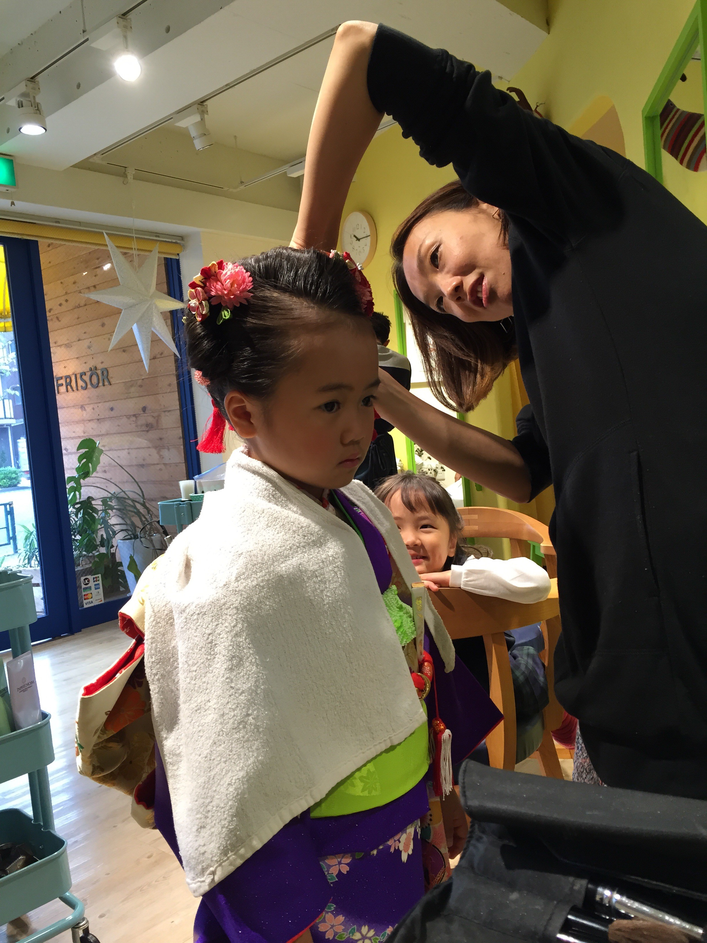 こんにちは、FRISORです! 本日、七五三のお客様をお迎えさせていただきました!ご家族ぐるみで仲良くさせていただいていることもあり、なんだかお店は大変な賑わいでございました♡普段とは違う姿になんだかみんなワクワク、ソワソワ。やっぱり女の子はキレイになるために頑張れちゃうのです☆ 記念すべき日のお手伝いをさせていただけてありがとうございました♡スタッフ一同とっても幸せでした♪