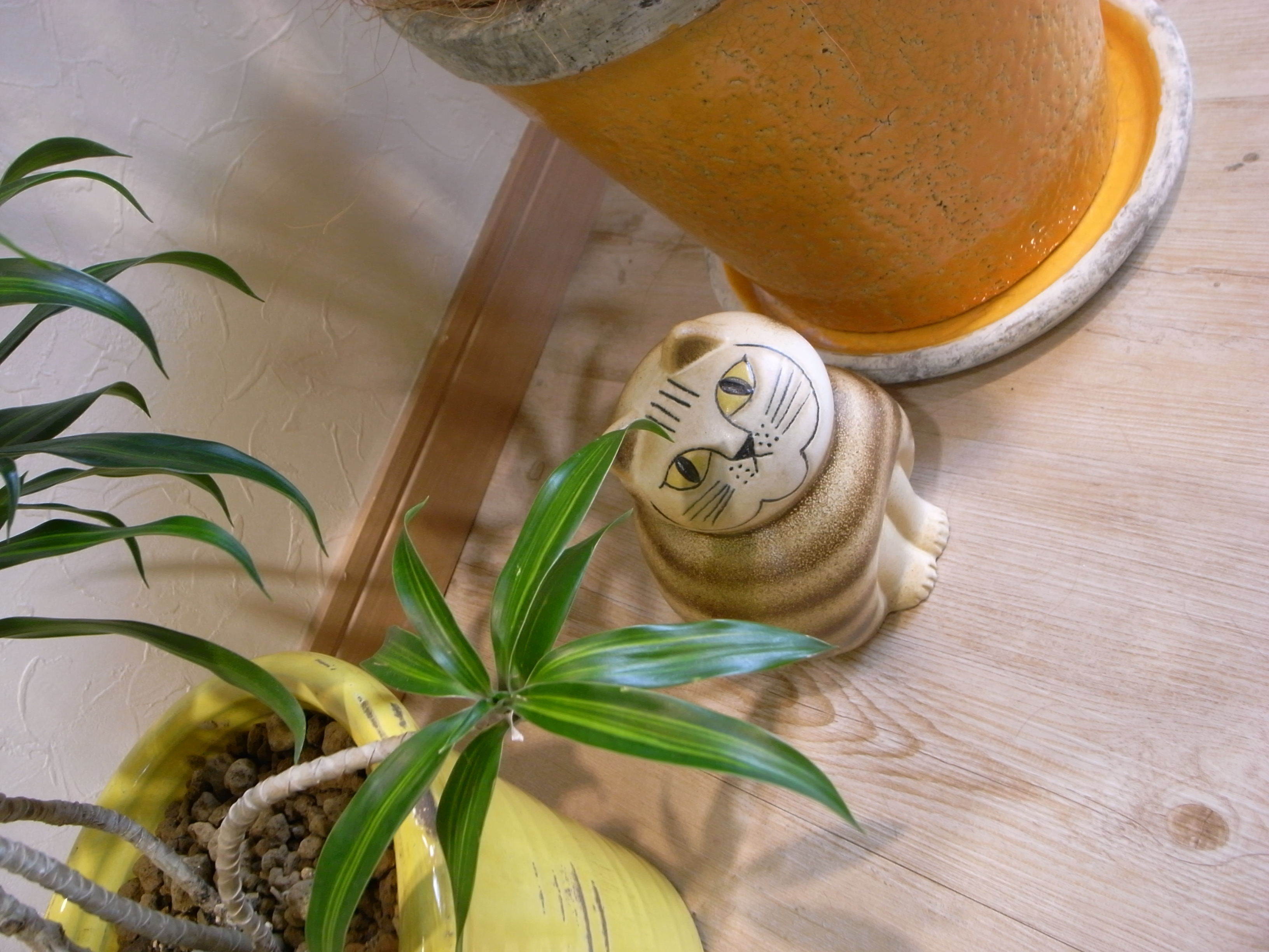 植物たちに囲まれてネコちゃんがこっち見てる(笑)